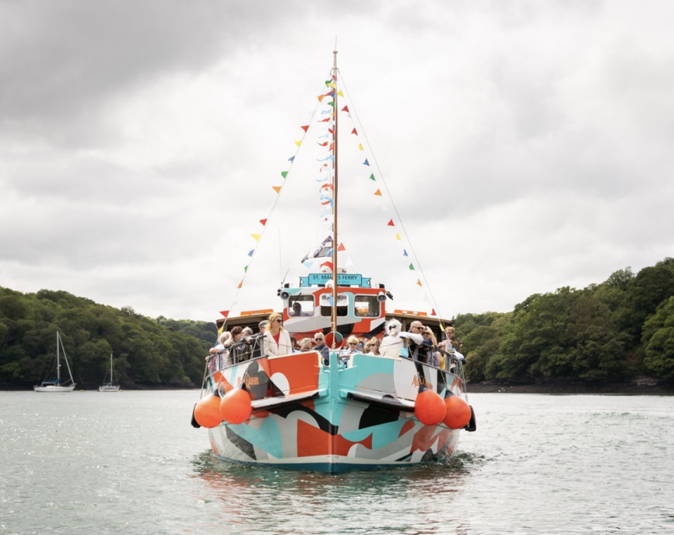 Fal River Cornwall commissioned local artist Kleiner Shames to transform the 80 year old ferry, May Queen into an extraordinary floating work of art, to celebrate the many surprising layers of wartime history associated with the river, and the St Mawes Ferry itself.