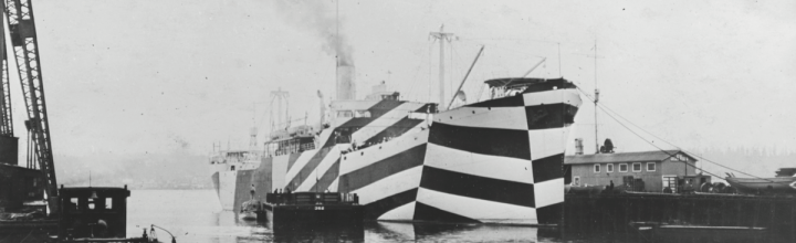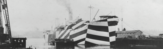 Edward Wadsworth, who supervised the camouflaging of over 2,000 ships during the First World War, painted a series of canvases of dazzle ships after the war, based on his wartime work.