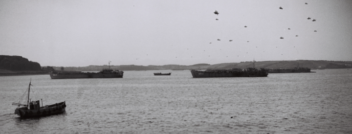 Embarkation points were constructed in various sites around the Fal River at locations such as TURNAWARE POINT, TOLVERNE, and TREBAH in readiness for the assault. The embarkation points were generally inconspicuous features, known as a ‘hard’, which sloped down towards the water. In the three weeks after D-Day there was an intense transportation of troops, equipment and supplies from the embarkation hards to the Normandy coast. In total 11,000 tons of supplies were dispatched every day from the hards to the battlefields.