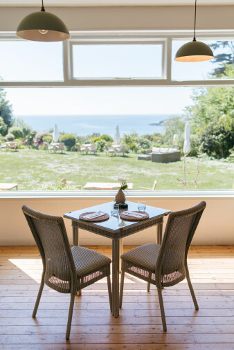 The Restaurant has a relaxed atmosphere – meet up with family and friends for a long lunch or supper. In summer, enjoy drinks on the lawn looking out to sea and in winter a traditional afternoon tea served in the lounge by the wood burning stove.