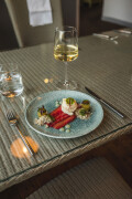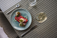 Our restaurant serves dishes inspired by the abundance of quality local produce. Choose a specially selected dish from our seasonal set dinner menu or a fresh light bite from our lunch menu. Along with its beach side location and family friendly features, The Rosevine can be counted as one of the best coastal restaurants in Cornwall.