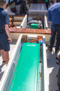 The ferry is unique because of the modern efficient diesel engine. Not only does the engine rapidly charge the batteries when they’re running low, but it can also directly provide propulsion for the boat at the same time meaning you can charge whilst on the move. This means the ferry can keep operating at all times and has less diesel running time than other options on the market.