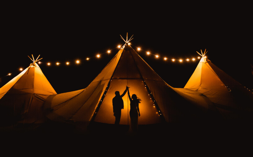 Summer celebration? Set up camp with a view of the water and dance the night away beneath balmy skies. Winter shindig? Cosy up, adorn the tipi with fairy lights and tell wedding tales around a fire pit.