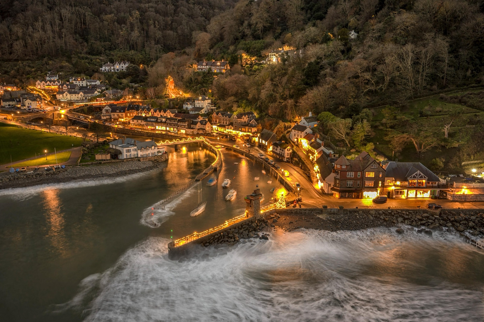 High Tide at Dusk in Lynmouth at Christmas, Exmoor