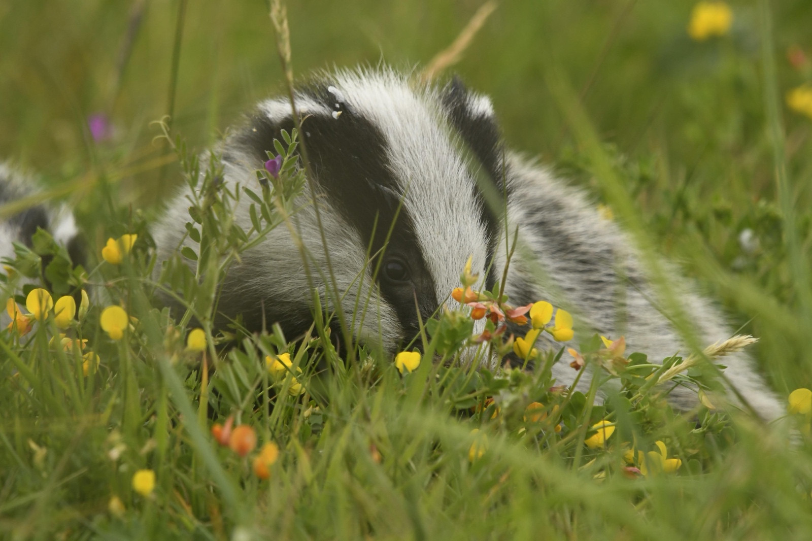 The surrounding wildflowers bring subtle colour and texture to the scene, while the softness of the grass beautifully frames the badger and reinforces the sense of being immersed within its environment. The photographer demonstrates a sensitive understanding of wildlife observation, allowing the landscape to support rather than overwhelm the subject.