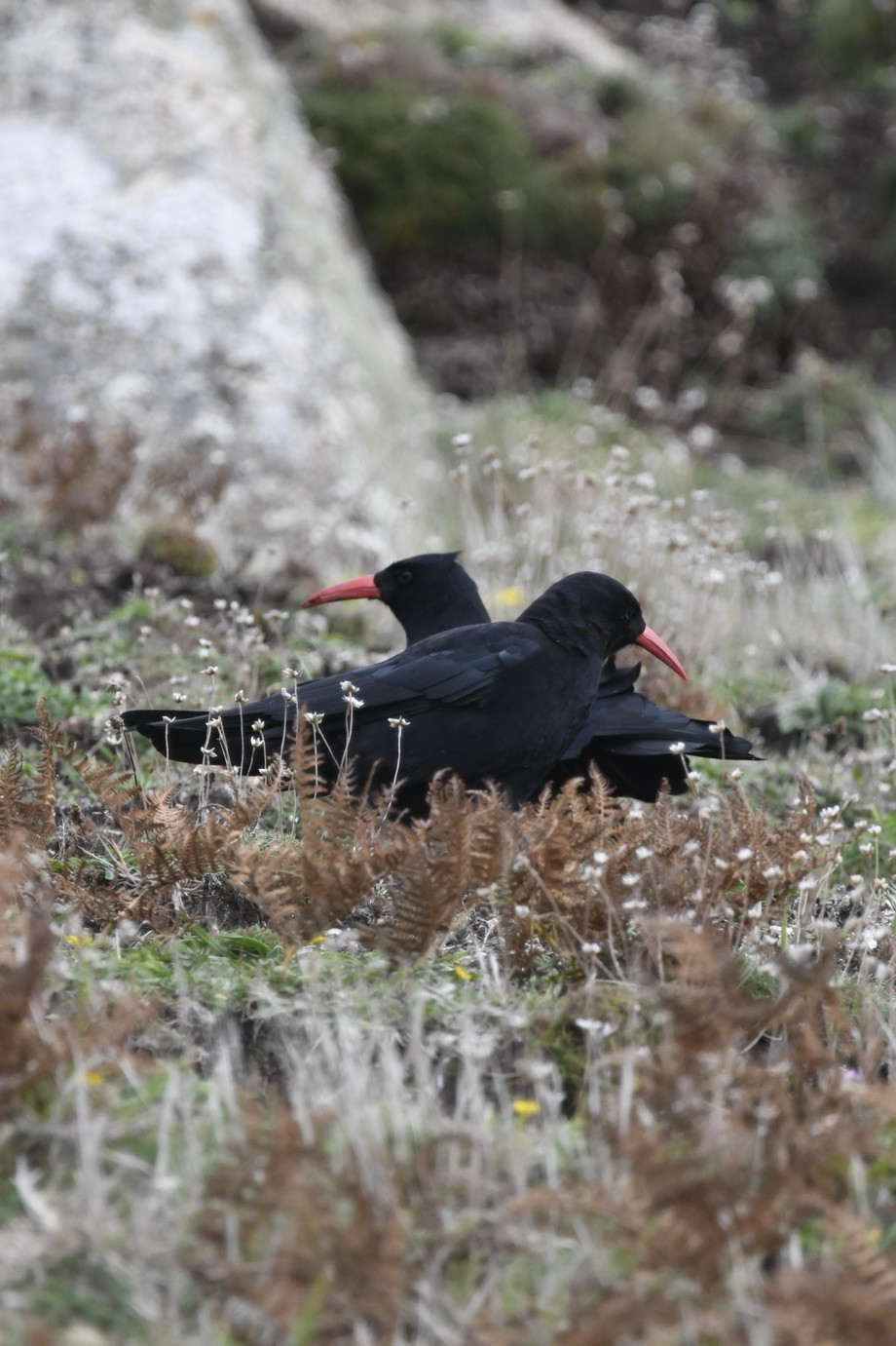 This is a charming and sensitively observed image, capturing two resting choughs nestled among wildflowers. The photographer has made excellent use of colour and texture: the rich tones of the birds stand out beautifully against the soft carpet of blooms, creating a striking yet gentle visual contrast.