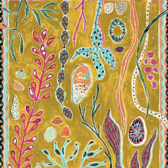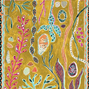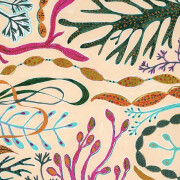 A solo show of recent paintings exploring the sea and land along the coast lines of western Cornwall. Seaweed, shells, sea glass are expressed in a trademark bold, colourful and pattern-led style.